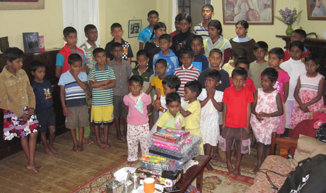 Officers from the Singhe Regiment as a part of the 74th year celebrations visited the home and entertained the children with music, provided with gifts and lunch.
